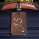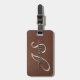 Modischer das Monogramm-Gepäckanhänger der Männer. Ausrüstungsbeschreibungen des Monogramms und Ihres Namens auf einem braunen ledernen Beschaffenheitsnachahmungshintergrund. (Kein wirkliches Leder wird benutzt), fügen Sie Ihre Kontaktdetails über die Rückseite hinzu. Vervollkommnen Sie Geschenk für ihn.