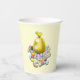 Das Osterküken steht auf dem großen goldenen Ostereier, das zu den kleinen bunten Ostereiern gehört, die für die Osterfeier dieses Jahres bereit sind.