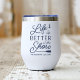 Feiern Sie das Leben in Ihrem Badeort mit diesem niedlichen personalisierten Weintumbler, der den Satz "Leben am Ufer ist besser" in marineblauer Schrift mit dem nautischen Flair enthält. Passen Sie Ihren Familiennamen und/oder das unten festgelegte Jahr an.