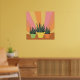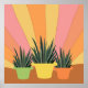 Die Drei-Agaves-Poster und die herunterladbare Dreifach-Wüste der Digitalen Kunst versetzen Pflanze in bunten Töpfen mit einem lustigen Retro-Sonnenuntergang. Inspiriert von den wunderschönen Sukkulenten im Botanischen Garten der Wüste.