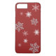 Illustrierte funkelnd Schneeflocken auf einem weihnachtlich roten Hintergrund schmücken dieses iPhone 7 Gehäuse und machen es zum perfekten Urlaubsgeschenk.
