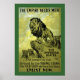 Das britische Poster "The Empire Needs Men!" des Ersten Weltkriegs, von Arthur Wardle, 1915. Dieses Poster, das darauf abzielt, die Militärrekruten aus dem Empire zu erhöhen, benutzt die Britische Löwe als Symbol für die Einheit des Kaiserreichs: "Der alte Löwe, der von den jungen Löwen unterstützt wird, trotzt seinen Feinden."