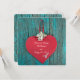 Das rote Herz auf türkisfarbenem Holz verspricht E Einladung