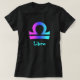 Waagesymbol in Lila und im Blau auf dem schwarzen T-Shirt der klassischen Damen. Die Arten der Männer und der Kinder auch verfügbar. Glücklicher Segen von glücklicher wünschender wohler Punkt-COM.
