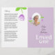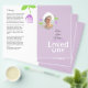 Ein neues, sauberes Mahnmal- oder Beerdigungsprogramm mit stylisierten Lavendel-Rose-Knoblauchgrafiken und Loved One Typografie mit "ewig" in einem Unendlichkeitssymbol. HINWEIS: Diese sind als Flachblech erhältlich. Man muss sie selbst falten.