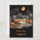 Dieses Halloween-Party lädt zu einem Spuk Haus im Land ein, unter Vollmond, mit einer Skarte und geschnitzten Jack-o-Laternen entlang einer schlammigen Straße. Der Rücken ist schwarz, der Text ist sehr blassgrau. Sehr niedlich und lustig!