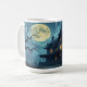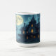 Ein unheimliches, gruseliges Spuk Haus unter Vollmond, umgeben von spukhaften Bäumen, macht ein schönes Halloween-Tasse.