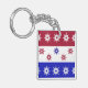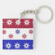 Dieses Design wurde mit Artrage gemacht. In einem Rechteck mit roten, weißen und blauen Streifen. Die Sterne sind auch rot, weiß und blau. Dies ist die amerikanische Flagge für die Feiertage. Diese Schlüsselringe sind aus Acrylglas und doppelseitig. Sie sind quadratisch, rund oder rechteckig.
