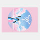 Feminine Silhouetten stehen unter einem Himmel wie Zuckerwatte mit einem weißen Transgender-Symbol darin wie das Bat-Signal, es hat ein Herz in der Mitte.