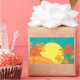 Mit einem Design eines Retro-tropischen Strandes bei Sonnenuntergang mit Palmen. Dieses Surfdesign ist in Rot, Orange und Gelb gehalten und erinnert an einen tropischen Badeort mit heißen Sommertagen. Für Sonnenliebhaber, Surfer und Sand und tropische Sonnenuntergänge.