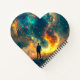 Dieses Bild wurde erstellt, während man an die Simulationshypothese dachte. Ich fragte mich, wie es aussehen könnte, wenn ein Schöpfer eines simulierten Universums außerhalb des Universums sein könnte, stehend darauf, anstatt darin zu sein.