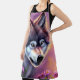 Das wachsame Auge des Wolfs. Dieses atemberaubende Wolfskunstwerk besticht durch einen majestätischen Wolf, der auf einem Berg stehend ist und von einem wunderschönen Nachthimmel umgeben ist. Die markanten gelben Augen des Wolfs scheinen in den Abgrund zu blicken.