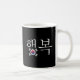Das Wort glücklich mit der südkoreanischen Fl. Kaffeetasse