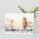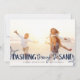 Parfait pour ceux qui vivent dans des climats tropicaux, ou pour partager une photo de vacances préférée sur la plage, notre carte photo de vacances chic côtier présente "Dashing Through the Sand" comme un riche texte bleu marine orné d'illustrations d'étoiles de mer. Personnalisez avec vos noms et salutation personnalisée (avec "voeux les plus chaleureux") en bas. Les cartes sont retournées à un motif d'étoiles de mer blanc sur la marine côtière.