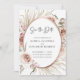Boho Blush Rose Floral Feuilles de Palmier Séchées Cadre Métallisé Rose Gold Faire-Part de Mariage... Notre luxueux faire-part de mariage floral boho présente un arrangement de belles roses roses blush, d'eucalyptus et de feuilles de palmier séchées autour d'un faux cadre ovale métallisé rose gold, créant une bordure élégante pour le texte de l'invitation à l'intérieur. Le verso de la carte contient les informations sur votre site web de mariage et un modèle de graphique de code QR que vous pouvez remplacer par le vôtre (ou supprimer). Tout le texte d'exemple sur les deux côtés de la carte (sauf le graphique du texte "Save the Date") peut être facilement révisé avec vos propres détails sur le modèle de personnalisation.
