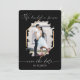 Ce fiançailles mariage photo simple et élégant sauve la date est parfait pour tout couple moderne. Il comporte une vignette en halo brun noir sur une photo du couple, dessinée dans une bordure en diamant en feuille d'or imbriquée avec une typographie manuscrite de script blanc. C'est minimal, chic, joli et beau d'annoncer votre journée spéciale. Au verso se trouve une configuration de texte simpliste avec la phrase "The future Mr and Mrs" ***IMPORTANT NOTE DE CONCEPTION : Pour toute demande de conception personnalisée comme les produits correspondants, les changements de couleur, les changements de position ou toute autre demande de modification, veuillez envoyer un message au concepteur. Vous pouvez même soumettre une demande pour un design entièrement personnalisé et nouveau.
