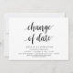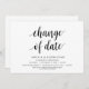 Ändern Sie die Datumskarte. Dies ist die Hochzeitsfeier Einladung Rescheduled (verschoben / verschoben) Karte (Ändern Sie das Datum), in der modernen minimalen einfachen Design-Thema, Schwarz Schriftart.