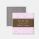 Save the Date ein Damast-Magnet mit rosa Hintergrund und Schokoladenakzent. Copyright © 2009 PixDezines.com und PixDezines auf zazzle.com