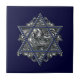 Eleganter Stern von David mit traditionell blau-weiß Hexagramm Symbol ergänzt durch einen verzierten barocken blühte von silberfarbenem Hintergrund. Art of Margaret Loftin Wititing.