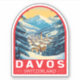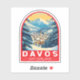 Davos Retro Vektor-Reise-Design. Davos ist eine Stadt in den Schweizer Alpen, im Kanton Graubünden. Es ist ein beliebtes Skigebiet mit einem Konferenzzentrum, in dem das jährliche Weltwirtschaftsforum stattfindet.