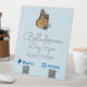 Customizable tabletop pedestal sign with orange monarch butterfly graphic on light blue background. Add your own QR code for Paypal and Venmo. Perfect for day spas, wellness studios and other beauty-related businesses.