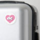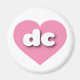 Dieser Magnet zeichnet sich durch ein formschönes und lebendiges rosa Herz aus, das die fett, weiß, abgerundeten Kleinbuchstaben dc enthält, eine spielerische Abkürzung für den District of Columbia.