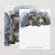 Un élégant carte pour notes à thème animal avec un écureuil gris bébé peint à l'aquarelle avec les yeux fixés contre un arrière - plan de lavage à l'aquarelle bleu turquoise. L'arrière de la carte présente une grande image de l'animal.