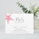 Conçu pour coordonner avec mon ensemble de papeterie mariage étoilée, cette carte de réponse comprend une réplique de mon étoile de mer moderne dans les couleurs de mariage rose de plage. Un espace est prévu pour que les clients puissent ajouter leurs réponses et un choix de repas simple. La carte revient à une couleur bleue solide offerte. Idéal pour les mariages du printemps et de l'été en Floride du Sud. Si vous cherchez plus d'inspiration de mariage sur la plage ou de papeterie mariage correspondante visitez www.zazzle.com/dotellabelle
