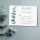 Cette carte RSVP de mariage présente de l'eucalyptus aquarelle dans les tons verts. Facile à personnaliser. Aquarelle originale © Michele Davies.