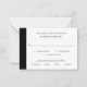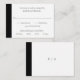 Mini carte RSVP Mariage moderne noir et blanc avec une bande de noir audacieuse sur le côté gauche. Le modèle est composé d'une police serif classique, d'une police serif moderne et d'un script élégant. Le dos a une bande le long du côté gauche avec votre monogramme. Ce design simple et minimaliste est parfait pour un mariage traditionnel et formel.
