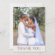 Elégant carte de remerciements en ivoire, avec un texte graphique coloré lisant du MERCI, sous une photo de mariage personnalisée. Personnalisez la photo et le texte à l'arrière pour répondre à vos besoins mariages. Des produits correspondants sont disponibles.