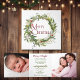 La couverture de cette carte de voeux triplée de Noël a une jolie couronne verte de Noël ornée de baies noires et rouges bleu foncé. Au centre se trouve le texte stylisé "Joyeux Noël". A l'intérieur, il y a des modèles photo sur le premier et le troisième panneau. Le panneau central contient votre texte personnalisé en vert et en rouge dans quatre champs. Le dos contient un autre modèle photo et une branche d'aquarelle verte correspondante. Une élégance simple !