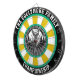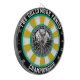 Art circulaire montrant un cerf aux bois dans une forêt paisible avec une cible sur lui.