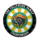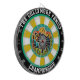 Ce design circulaire saisissant présente un grizzli dans la forêt avec une cible.
