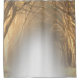 fondo blanco y un camino de árboles en los laterales de ramos de arboles sin hojas.