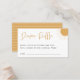 Boho Chic script graphique "Diaper Raffle", carte de boîtier baby shower. Caractéristiques des cartes, illustration de soleil en art de ligne en couleur jaune rustique avec support motif jaune assorti.