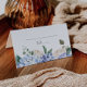 Cette carte élégante pliée avec hydrangea bleu est parfaite pour une réception de mariage de printemps ou d'été. Le design floral classique présente de doux hydrangeas bleu poudre aquarelle rehaussés de fleurs blanches crème neutres et de feuilles vertes. Personnalisez le dos des cartes avec les noms des mariés et la date. Achetez en gros et écrivez les noms des invités et les numéros de table sur les cartes imprimées à leur arrivée.