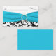 Cette carte Place damassé noir et blanc a un ruban imprimé bleu aqua et un broche à bijoux en diamant IMPRIMÉ qui serait parfait pour un mariage à thème aqua et noir.**REMARQUE, si vous changez la taille de la carte, ou si vous changez les polices, ou la taille de la police, une partie du design et/ou du texte peut être coupé. Tout va s'imprimer comme vous le voyez sur votre écran. Je ne verrai pas les changements que vous faites, et Zazzle ne corrigera rien (fautes de frappe, mauvais alignement, etc.). Le texte est entièrement personnalisable. Si vous avez besoin d'aide pour ce produit, envoyez-moi un courriel AVANT de passer votre commande. Si vous avez besoin d'autres articles correspondants, veuillez envoyer votre demande par courriel à niteowlstudio@gmail.com