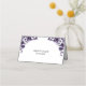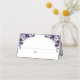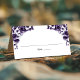 Une carte de table à mariage fleuri violet qui comprend les noms de la mariée et du marié ainsi que leur date de mariage.