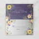 Elégante, moderne, boho, botanique, rustique bois violet carte mariage avec nom et numéro de table, fleurs d'aquarelle, tournesols et verdure.