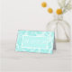 Carte de siège damassé turquoise. L'élégante collection sera parfaite pour une fête de jardin intérieur ou extérieur pour une mariage, une douche nuptiale, un baby shower ou une fête de style champêtre. Toute la collection est personnalisable. Bonne fête, applaudissements !