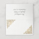 Elégante carte pliée en blanc aux accents décoratifs en dentelle dorée, à l'avant et à l'intérieur en feuille d'or massif. Personnalisez le texte personnalisé, au verso de la carte, pour lire ce que vous voulez. Personnalisez l'avant de chaque carte, à la main, pour votre réception de mariage.