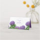 Cet élégant design floral présente des hydrangées violettes. Les magnifiques hydrangées violettes sont agrémentées de leur verdure. Au verso de la carte de place, les noms de la mariée et du marié sont assortis à la couleur violette de la fleur d'hydrangée et sont encerclés de trois anneaux géométriques. Il s'agit de l'élégant design floral mariage idéal pour n'importe quel thème mariage. Elégant design de la carte de place mariage de fleurs d'hydrangée avec des éléments modernes. Des invitations de mariage et d'autres articles de papeterie sont également disponibles. Facile à personnaliser avec vos détails. Ecrivez à la main vos noms d'invités et numéro de table dans l'espace prévu à cet effet.