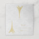 Faites savoir aux clients de la réception où ils seront assis avec une carte de place Gold Eiffel Tower Mariage damassé. Le design de la carte Place présente la Tour Eiffel contre un délicat arrière - plan en dentelle damassée. Papier à lettres mariage supplémentaire disponible avec cette conception aussi.