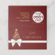 Luxueux et riche design de vacances avec une splendide silhouette d'arbre de Noël avec des flocons de neige dorés. Décoré d'un arc cadeau en or blanc sur un arrière - plan rouge luxuriant. Ce certificat cadeau festif est parfait pour votre petite entreprise ou pour offrir à vos amis et à votre famille.