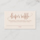 Demandez aux invités d'apporter un paquet de couches de toute taille pour une chance de gagner un prix spécial! Cette carte de tombola personnalisable comporte un script fantaisiste et une typographie simple. Cette carte de tombola en terre cuite est parfaite pour n'importe quel thème de baby shower et saison. Personnalisez en ajoutant une marque spécifique de couches ou tout autre détail.