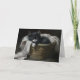 Envoyez à quelqu'un que vous aimez cette adorable carte de voeux pour chaton et faites votre journée ! La carte est vide à l'intérieur pour votre personnalisation personnelle ou message manuscrit. Ce tableau se concentre sur un adorable chaton noir et blanc niché au sommet d'une couverture blanche dans une corbeille cachée dans un coin cosy. Les yeux du chaton sont brillants et curieux, et il semble tendre vers la frange sur le bord de la couverture. Les petites cordes blanches de la frange sont si tentantes ! L'environnement est faiblement éclairé, créant un sentiment de chaleur et d'intimité. Le tableau dégage un sentiment de confort et de tranquillité, comme si le spectateur était tombé sur un moment de sérénité dans la vie de ce petit félin ludique. Les détails de la peinture sont réunis pour créer une scène charmante et attachante qui ravira tout amoureux des chats.