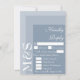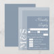 Simple carte de mariage chic RSVP avec choix de repas pour les mariées qui ornent leurs cérémonies en bleu poussiéreux moderne. La suite mariage chic a une police blanche moderne avec des initiales monogramme sur le côté.