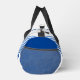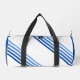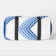 Lignes bleues dans les cinq nuances variées Sombre à lumière, du bas au haut. Deux jeux de bandes sont placés en diagonale, se rencontrant au centre du haut et du bas du sac. Les panneaux d'extrémité sont les tons bleus les plus foncés.