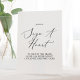 Cette délicate calligraphie noire signe un signe cardiaque est parfait pour un mariage moderne. Le design minimaliste romantique présente une belle et élégante typographie noire sur un arrière - plan blanc au look épuré et sobre.